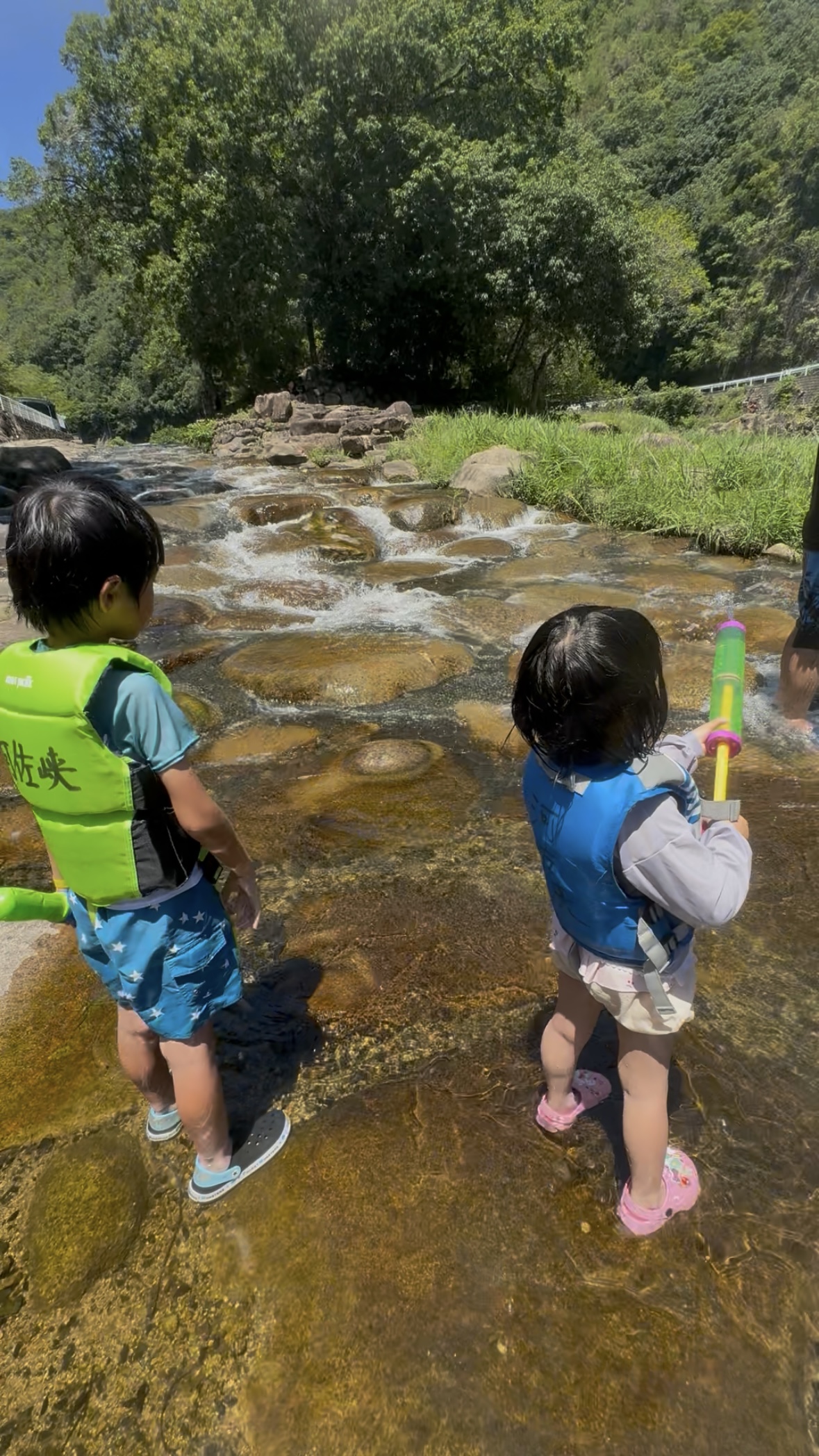 子どもたちと私は初めての川あそびでしたが、ライフジャケットの無料レンタルもあり、川も浅いところが広く、水も綺麗で冷たくて、楽しむことができました![]()