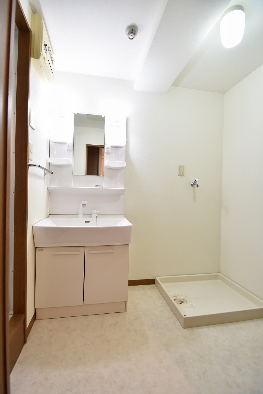 【洗面台】うれしいシャワー付独立洗面台、室内洗濯機置場あり