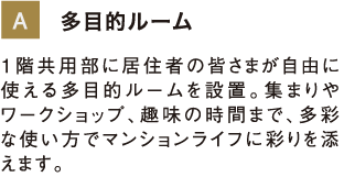 歩車分離設計や、備蓄倉庫、多目的ルーム、ペット足洗場、宅配ボックスなど、