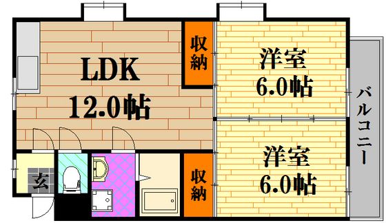 | 築年月 | 1989年12月 | 間取り | 2LDK( LDK12畳/洋室6畳/洋室6畳 ) | 専有面積 | 51m2 |