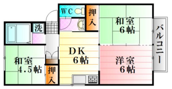 | 築年月 | 1989年4月 | 間取り | 3DK( DK6畳/洋室6畳/和室6畳/和室4.5畳 ) | 専有面積 | 51.05m2 |