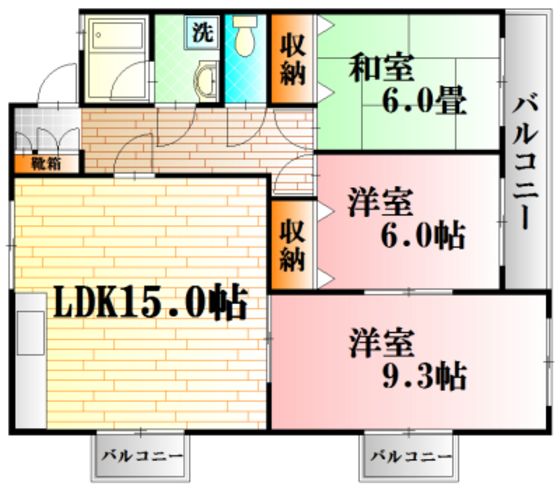 | 築年月 | 1996年3月 | 間取り | 3LDK( LDK15畳/和室6畳/洋室6畳/洋室9.3畳 ) | 専有面積 | 82.17m2 |