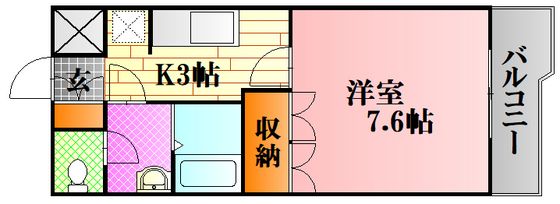 | 築年月 | 2006年9月 | 間取り | 1K( K3畳/洋室7.6畳 ) | 専有面積 | 26.44m2 |