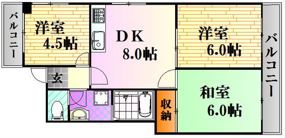 | 築年月 | 1985年1月 | 間取り | 3LDK( LDK9.5畳/洋室6畳/洋室4.5畳/和室6畳 ) | 専有面積 | 63.78m2 |