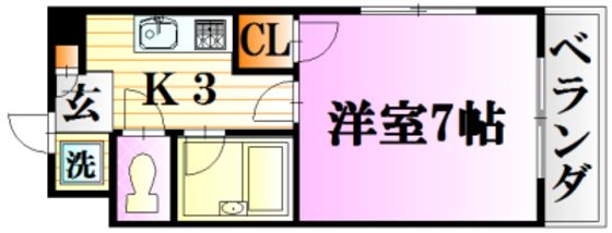 | 築年月 | 1999年9月 | 間取り | 1K( 洋室7畳/K3畳 ) | 専有面積 | 22.68m2 |