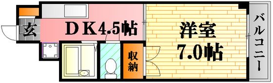 | 築年月 | 1991年1月 | 間取り | 1DK( DK4.5畳/洋室7畳 ) | 専有面積 | 24.5m2 |