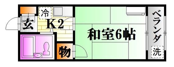 | 築年月 | 1989年3月 | 間取り | 1K( 和室6畳/K2畳 ) | 専有面積 | 17.4m2 |