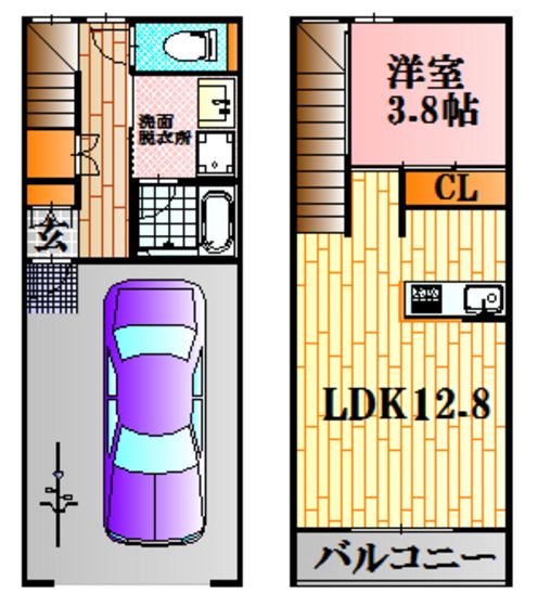 | 築年月 | 2017年9月 | 間取り | 1LDK( LDK12.8畳/洋室3.8畳 ) | 専有面積 | 46.88m2 |