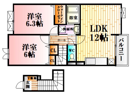 | 築年月 | 2010年3月 | 間取り | 2LDK( 洋室6畳/洋室6.3畳/LDK12畳 ) | 専有面積 | 57.76m2 |