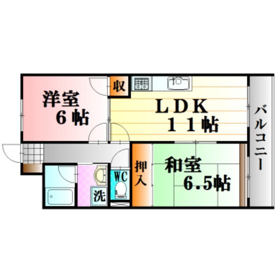 | 築年月 | 2000年3月 | 間取り | 2LDK( LDK11畳/和室6.5畳/洋室6畳 ) | 専有面積 | 52.25m2 |