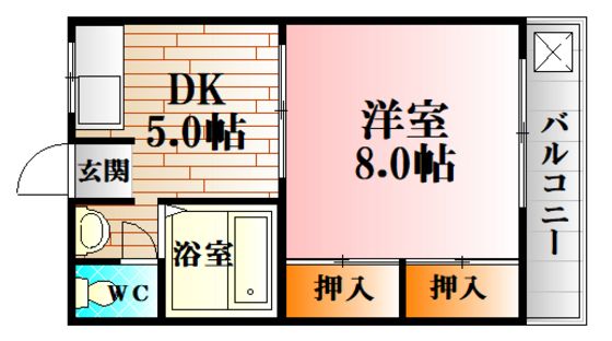 | 築年月 | 1989年11月 | 間取り | 1DK( 洋室8畳/DK5畳 ) | 専有面積 | 28.94m2 |
