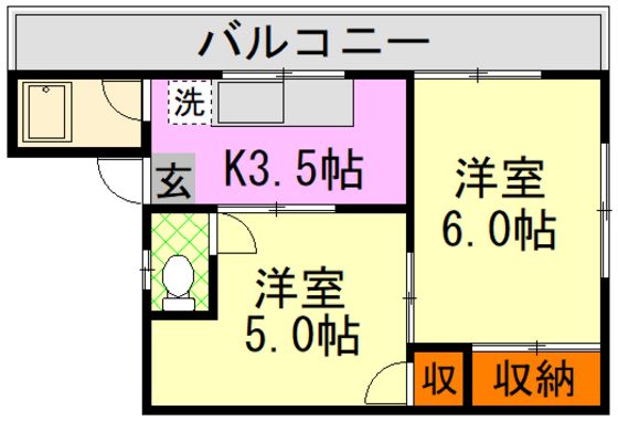 | 築年月 | 1973年5月 | 間取り | 2K( K3.5畳/洋室5畳/洋室6畳 ) | 専有面積 | 43m2 |