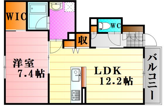 | 築年月 | 2021年3月 | 間取り | 1LDK( LDK12.2畳/洋室7.4畳 ) | 専有面積 | 50.94m2 |