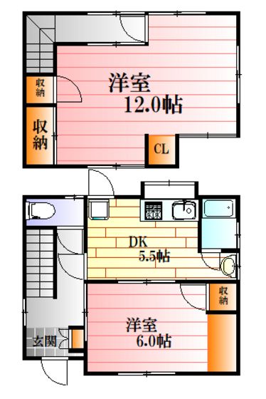 | 築年月 | 1974年6月 | 間取り | 2DK( DK5.5畳/洋室6畳/洋室12畳 ) | 専有面積 | 61.28m2 |