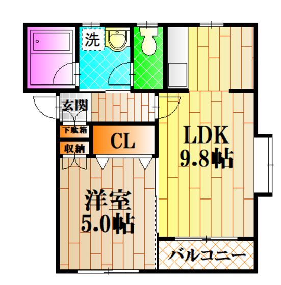 | 築年月 | 2002年6月 | 間取り | 1LDK( LDK9.8畳/洋室5畳 ) | 専有面積 | 36.7m2 |