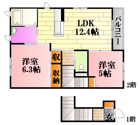 | 築年月 | 2011年9月 | 間取り | 2LDK( LDK12.4畳/洋室6.3畳/洋室5畳 ) | 専有面積 | 61.22m2 |