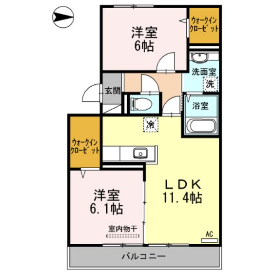 | 築年月 | 2013年6月 | 間取り | 2LDK( LDK11.4畳/洋室6.1畳/洋室6畳 ) | 専有面積 | 58.07m2 |