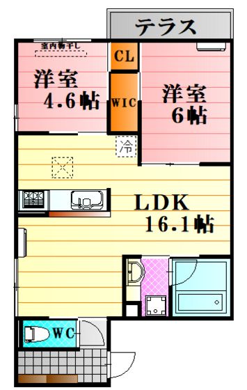 | 築年月 | 2021年8月 | 間取り | 2LDK( LDK16.1畳/洋室6畳/洋室4.6畳 ) | 専有面積 | 58.93m2 |