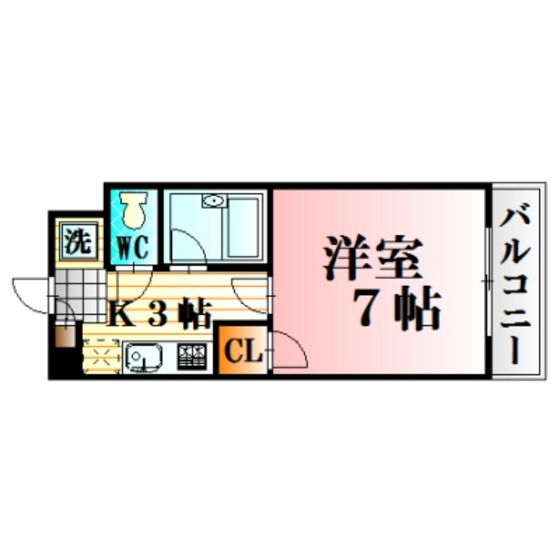 | 築年月 | 1999年9月 | 間取り | 1K( 洋室7畳/K3畳 ) | 専有面積 | 22.68m2 |