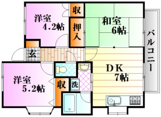 | 築年月 | 1995年8月 | 間取り | 3DK( DK7畳/和室6畳/洋室5.2畳/洋室4.2畳 ) | 専有面積 | 50m2 |