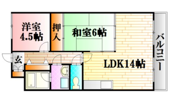 | 築年月 | 1996年1月 | 間取り | 2LDK( 和室6畳/洋室4.5畳/LDK14畳 ) | 専有面積 | 67m2 |