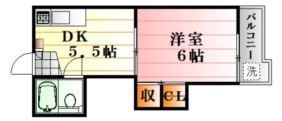 | 築年月 | 1981年9月 | 間取り | 1DK( DK5.5畳/洋室6畳 ) | 専有面積 | 22.68m2 |