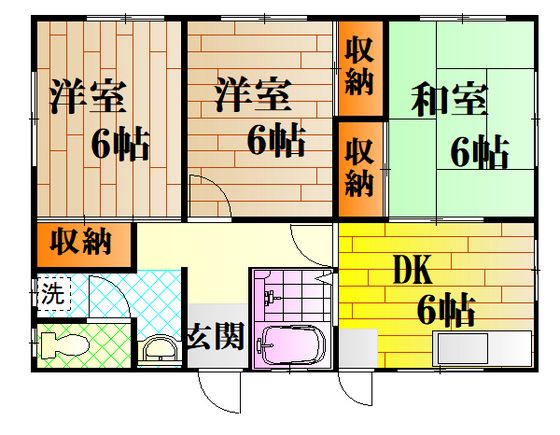 | 築年月 | 1972年8月 | 間取り | 3DK( DK6畳/和室6畳/洋室6畳/洋室6畳 ) | 専有面積 | 61.27m2 |