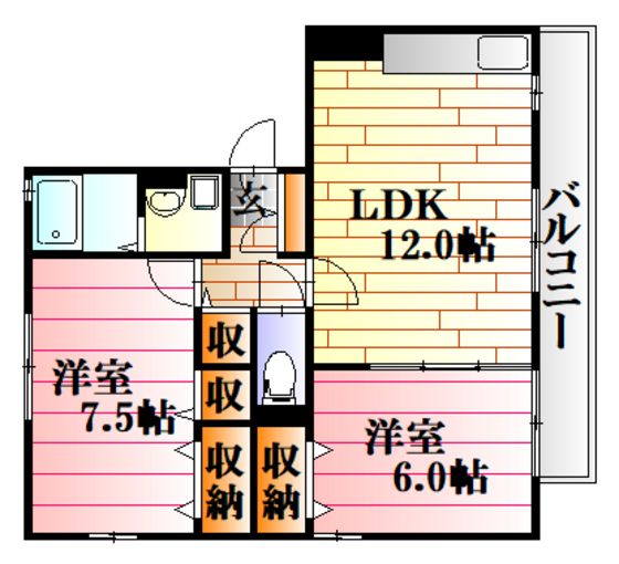| 築年月 | 2005年3月 | 間取り | 2LDK( LDK12畳/洋室7.5畳/洋室6畳 ) | 専有面積 | 59.6m2 |