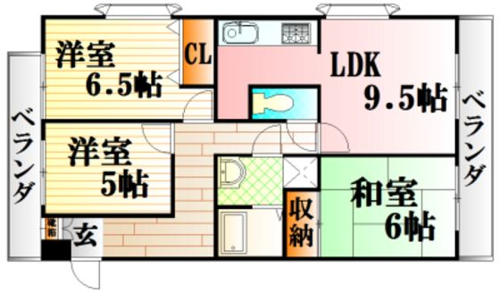 | 築年月 | 1995年12月 | 間取り | 3LDK( LDK9.5畳/洋室6.5畳/和室6畳/洋室5畳 ) | 専有面積 | 63m2 |
