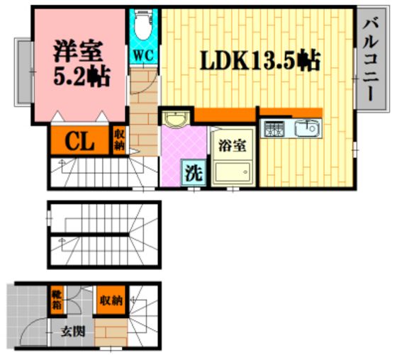 | 種別 / 構造 | アパート / 木造 | 主要採光面 | 南 | 所在階 / 階数 | 3階 / 3階 |