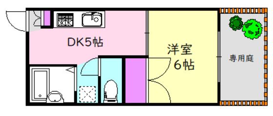 | 築年月 | 1991年1月 | 間取り | 1DK( DK5畳/洋室6畳 ) | 専有面積 | 24.71m2 |