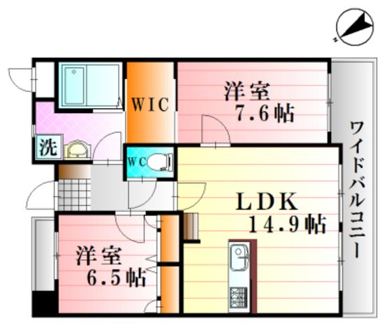 | 築年月 | 2006年5月 | 間取り | 2LDK( LDK14.9畳/洋室7.6畳/洋室6.5畳 ) | 専有面積 | 66.58m2 |