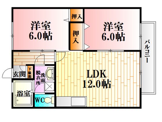| 築年月 | 1990年1月 | 間取り | 2LDK( 洋室6畳/洋室6畳/LDK12畳 ) | 専有面積 | 52.8m2 |