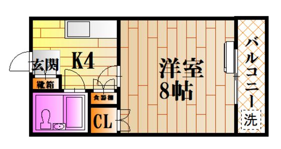 | 築年月 | 1989年3月 | 間取り | 1K( 洋室8畳/K4畳 ) | 専有面積 | 19.8m2 |