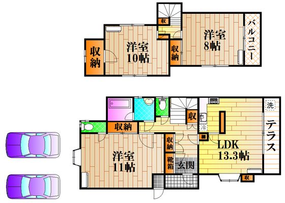 | 種別 / 構造 | 一戸建て / 木造 | 主要採光面 | 南 | 所在階 / 階数 | 1階 / 2階 |