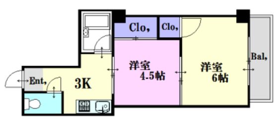 | 築年月 | 1986年3月 | 間取り | 2K( 洋室4.5畳/洋室6畳/K3畳 ) | 専有面積 | 30.13m2 |