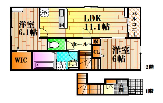 | 築年月 | 2023年10月 | 間取り | 2LDK( LDK11.1畳/洋室6.1畳/洋室6畳 ) | 専有面積 | 58.64m2 |