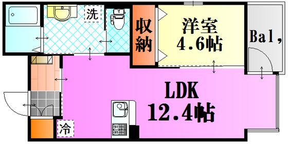| 築年月 | 2017年2月 | 間取り | 1LDK( LDK12.4畳/洋室4.6畳 ) | 専有面積 | 42.04m2 |