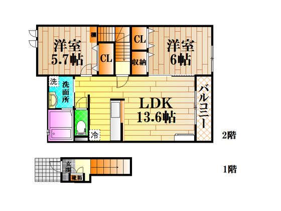 | 築年月 | 2013年7月 | 間取り | 2LDK( 洋室6畳/洋室5.7畳/LDK13.6畳 ) | 専有面積 | 60.02m2 |