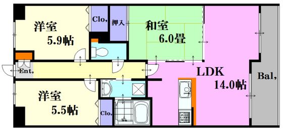| 築年月 | 1998年1月 | 間取り | 3LDK( LDK14畳/和室6畳/洋室5.5畳/洋室5.9畳 ) | 専有面積 | 66.4m2 |