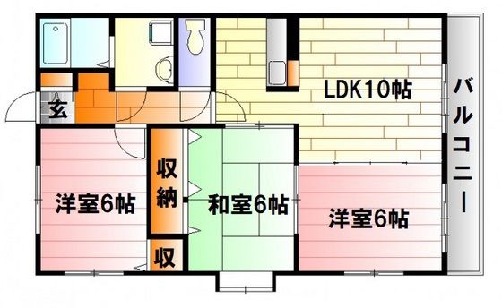 | 築年月 | 1997年7月 | 間取り | 3LDK( LDK10畳/洋室6畳/洋室6畳/和室6畳 ) | 専有面積 | 66m2 |