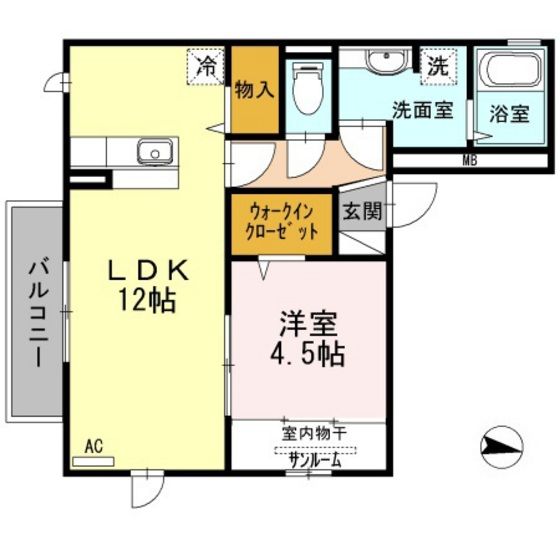 | 築年月 | 2015年4月 | 間取り | 1LDK( LDK12畳/洋室4.5畳 ) | 専有面積 | 45.51m2 |