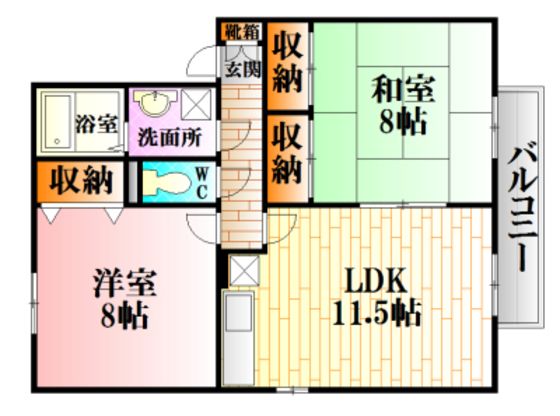 | 築年月 | 1999年2月 | 間取り | 2LDK( LDK11.5畳/洋室8畳/和室8畳 ) | 専有面積 | 56.1m2 |