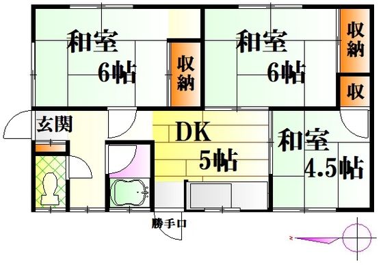 | 築年月 | 1975年1月 | 間取り | 3DK( DK5畳/和室6畳/和室6畳/和室4.5畳 ) | 専有面積 | 48.6m2 |