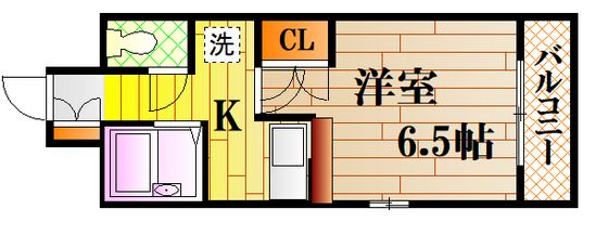 1K( 洋室6.5畳/K3畳 ) |