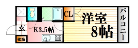 | 築年月 | 1999年6月 | 間取り | 1K( 洋室8畳/K3.5畳 ) | 専有面積 | 25.5m2 |