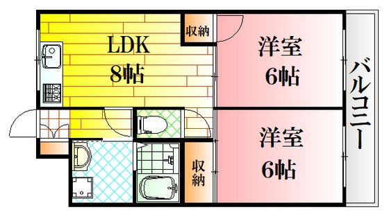 | 築年月 | 1994年9月 | 間取り | 2LDK( LDK8畳/洋室6畳/和室6畳 ) | 専有面積 | 45.36m2 |