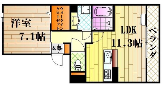 | 築年月 | 2018年11月 | 間取り | 1LDK( LDK11.3畳/洋室7.1畳 ) | 専有面積 | 44.32m2 |