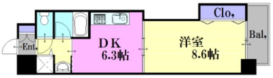 | 築年月 | 2009年3月 | 間取り | 1DK( 洋室8.6畳/DK6.3畳 ) | 専有面積 | 36.3m2 |