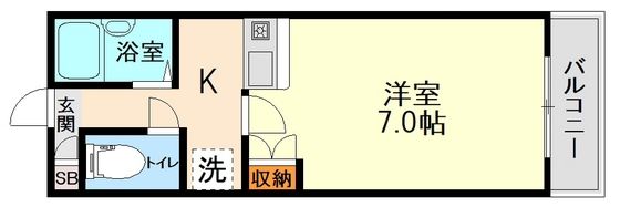 | 築年月 | 1990年8月 | 間取り | 1K( K1.5畳/洋室7畳 ) | 専有面積 | 22m2 |